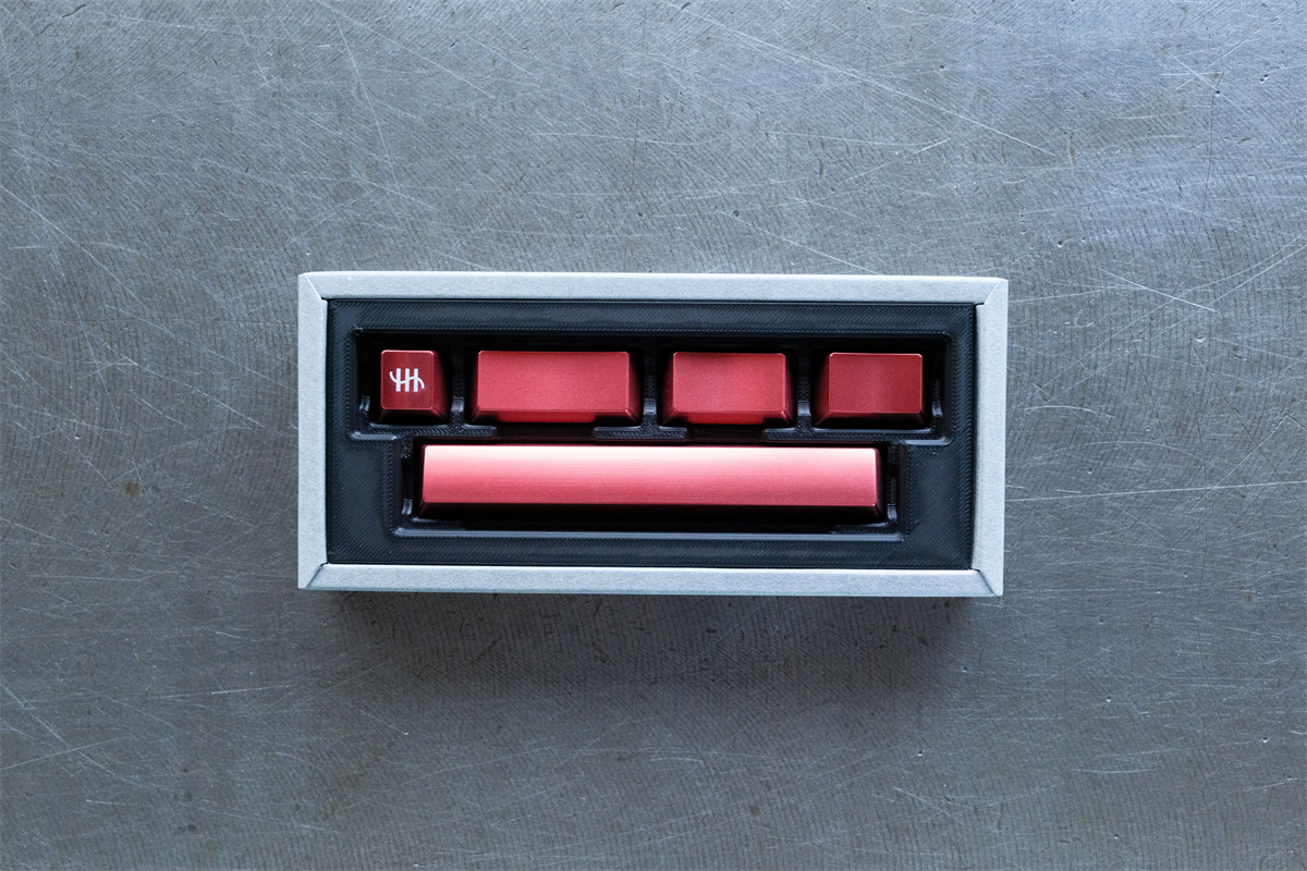 これは、HHKB Studioの専用キートップとして使えるEscキーなどをセットにしたもの。木製(黒檀)とアルミ製(レッド/シルバー/ブラウン)が用意されている。