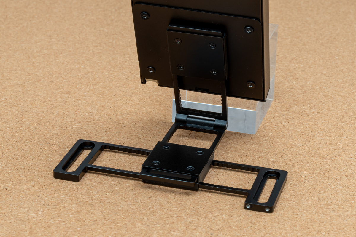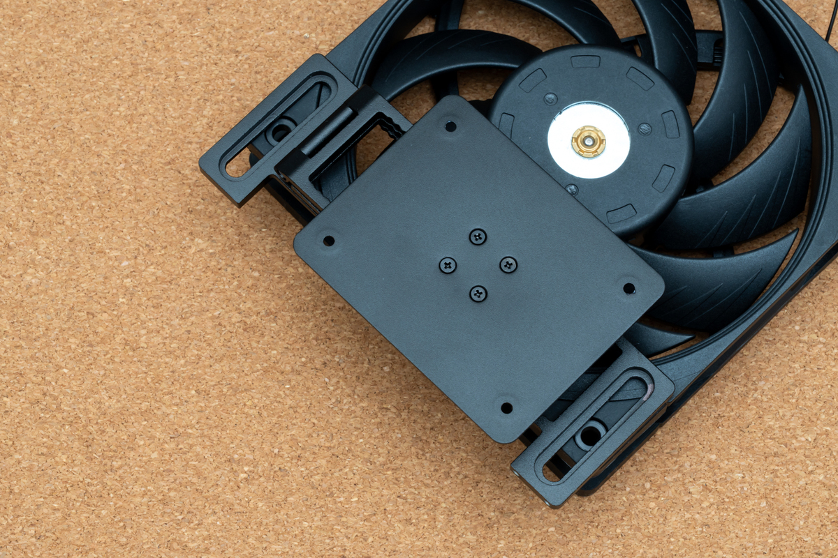 「秀逸!」との声があるブラケットは、計3ヵ所のスライドレールと、2ヵ所のヒンジ回転で、さまざまな形状に変化する優れものだ。140mm径ファンにはマウントを追加する必要があるが、ケース内や、机上の横、縦置きいずれも、ひとつのブラケットで対応できる。