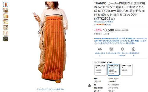 【Amazonセール】THANKO ヒーター内蔵おひとりさま用着るこたつ「こたんぽ(KTTK25CBW)」登場!