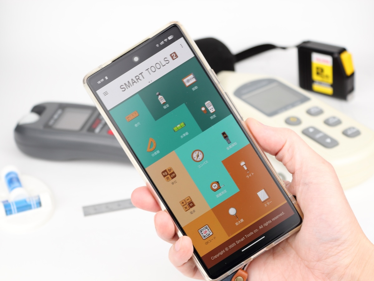 このアプリでは、長さや角度、騒音、振動、照度、方角、磁力、高さなどが測れるほか、ライトや拡大鏡、単位変換といった便利機能まで搭載。これらの機能が、たった750円ですべて手に入ります。