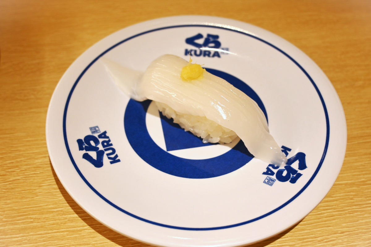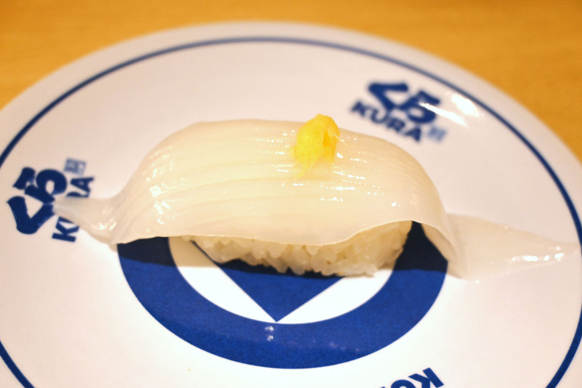 やりいか自体は定番ネタですが、今回は300g以上の大型サイズを厳選しているとのこと。表面だけでなく裏面にも細かくスリットを入れることで、ねっとりとした食感と旨みを引き出しています。