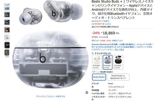 Appleファミリーの一員である人気オーディオブランド「Beats(ビーツ)」の完全ワイヤレスイヤフォン「Beats Studio Buds +」が、Amazonセールに登場しました。参考価格24,800円のところ、24%オフの18,869円で販売中です。