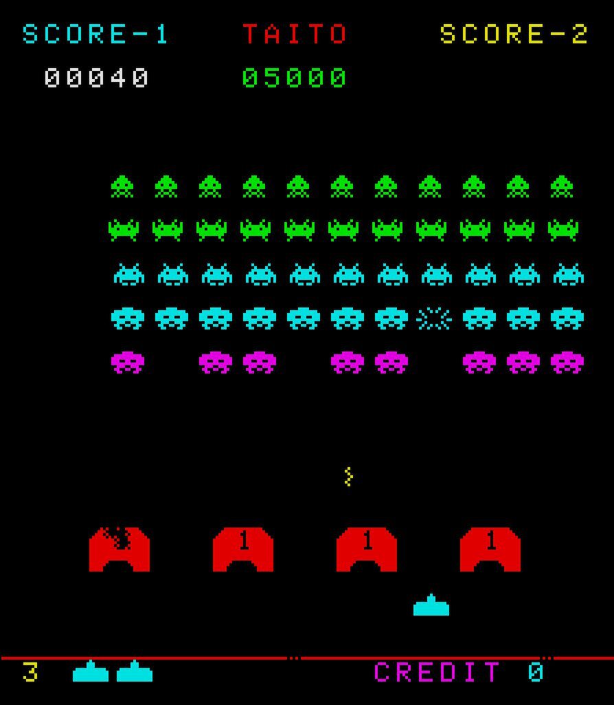 『スペースインベーダー・パート2』は、1979年にタイトーから発売されたシューティングゲーム。敵のインベーダーは分裂やUFOからの増援といった戦術を身に付け、よりパワーアップしている。レインボーボーナスなど高得点を狙うためのフィーチャーも増え、スキルを磨いた上級者たちから長く愛されている作品だ。