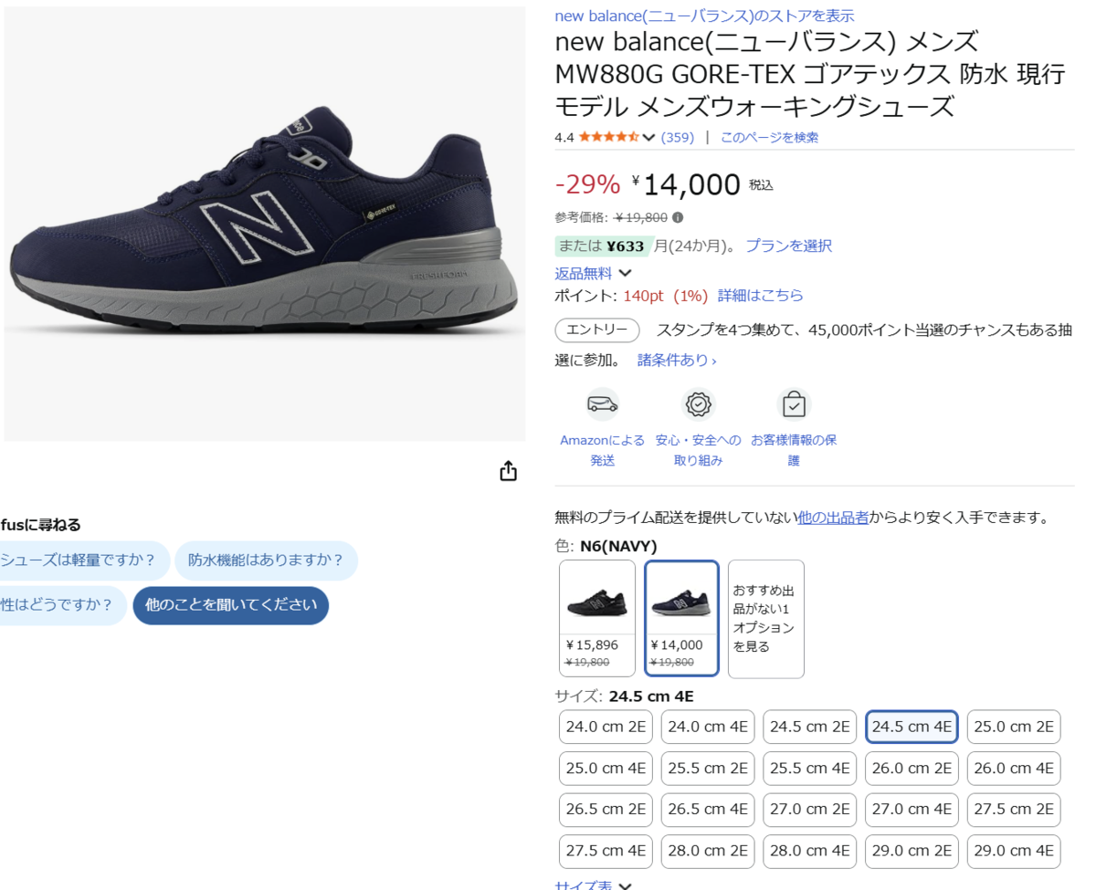 歩きやすさ系の靴は“合う・合わない”が出やすいので、気になる人はレビューのサイズ感コメントも要チェック。価格が動いているタイミングなら、合うサイズが残っているうちに早めに確認しておくと安心です(表示価格は随時変わります)。
