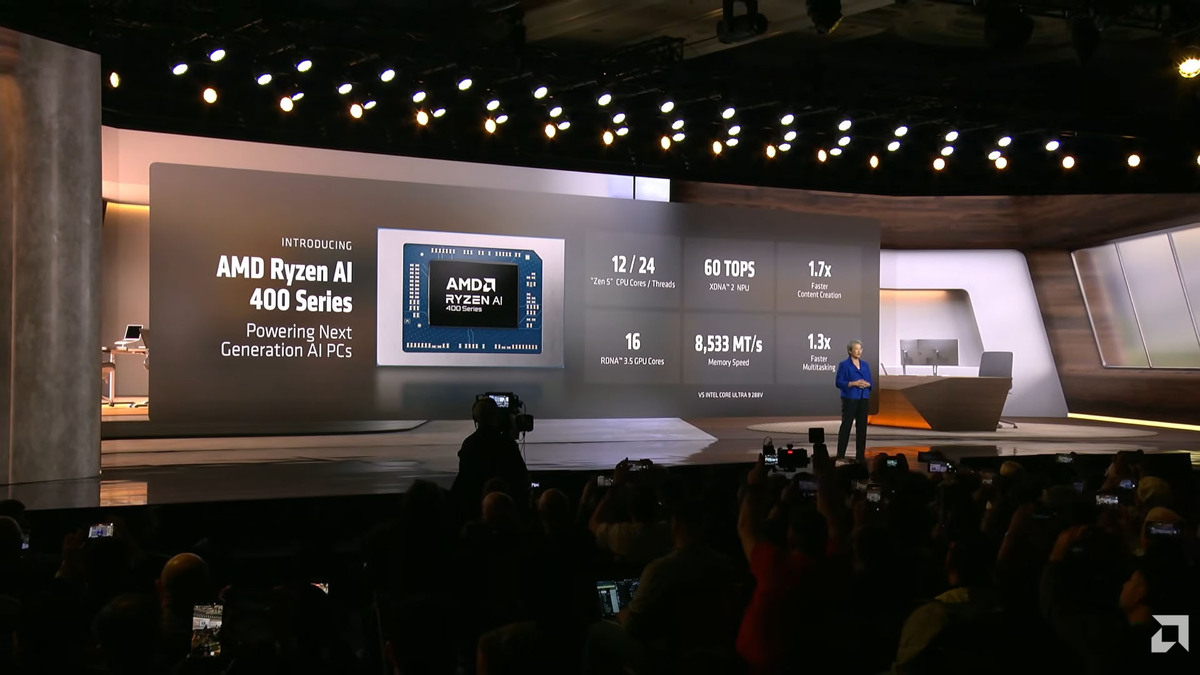 AMDは「AI対応PC」の定義として、40 TOPS以上のAI演算性能を提示。これに応える形で発表されたのが「Ryzen AI 400シリーズ」だ。最上位のRyzen AI 9 HX 475では最大60 TOPSを発揮し、新たなAI PCの基準を余裕でクリアする。