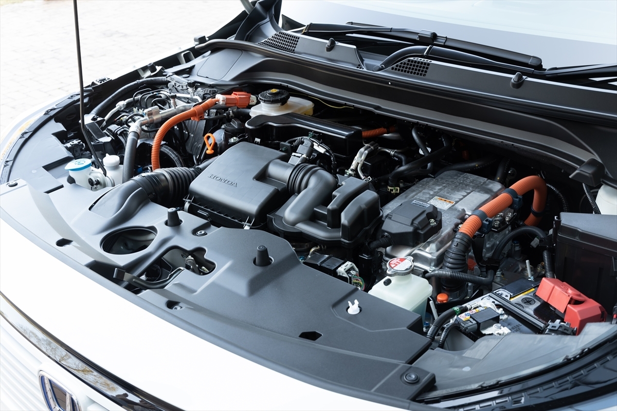 続いてパワートレインをチェックしてみましょう。VEZELのパワートレインは1.5L 直4自然吸気にモーターの組み合わせ。最高出力はエンジンが106馬力、モーターが131馬力で、公称燃費は21.2km/L(WLTCモード)。