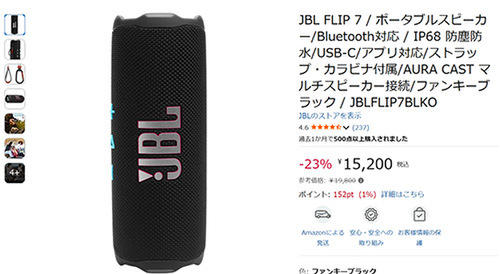 JBLの人気ポータブルスピーカーシリーズの新作「JBL FLIP 7」が、Amazonセールに登場しました。参考価格19,800円のところ、23%オフの15,200円で販売中です。