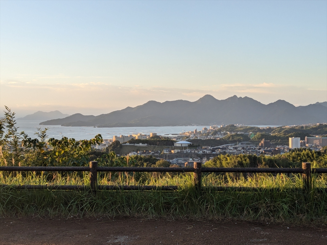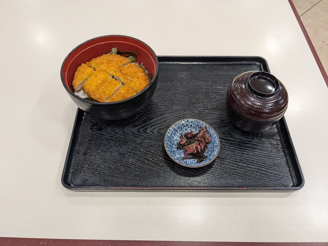 人間の方も給油ならぬ朝ご飯。「がんす丼」(680円)って何だろう? ということでいただくことに。魚のすり身カツで、思ったより塩味が強い印象。宮島の朝焼けを堪能したところで、また西へ。