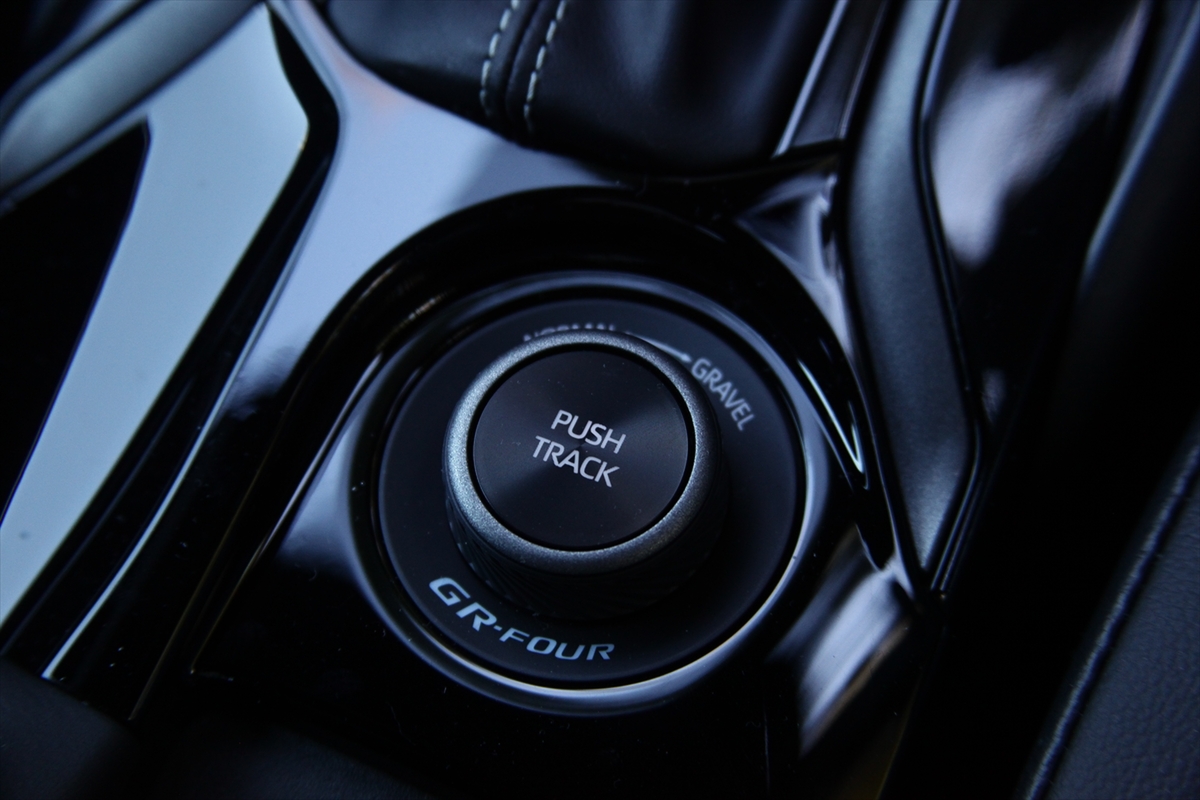 なお、今回の改良で4WDシステム「GR-FOUR」にも手が加えられました。それは前後駆動配分の設定です。ノーマルモードで60:40なのは従来と変わりませんが、グラベルモードでは50:50に、トラックモードでは60:40~30:70の間で自動可変するようになりました。
