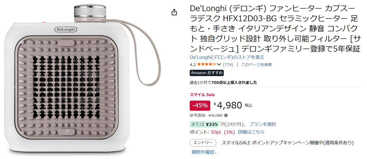 【AmazonスマイルSALE 初売り】De'Longhi(デロンギ)ファンヒーター カプスーラデスク「HFX12D03-BG」登場!