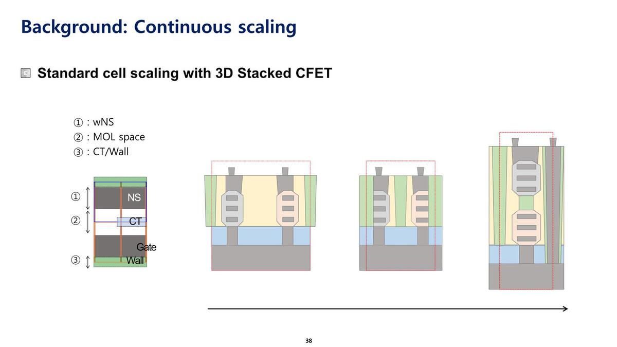 Nanosheetに続くのがForksheet世代になる。Forksheetについては連載837回で説明しているが、要するにP型とN型のトランジスタをどんどん隣接させて密度を向上させた構成である。なのだが、なぜかSamsungはこのForksheetをパスして次のCFETに話を移しているので、こちらもForksheetはパスして次の話に進む。