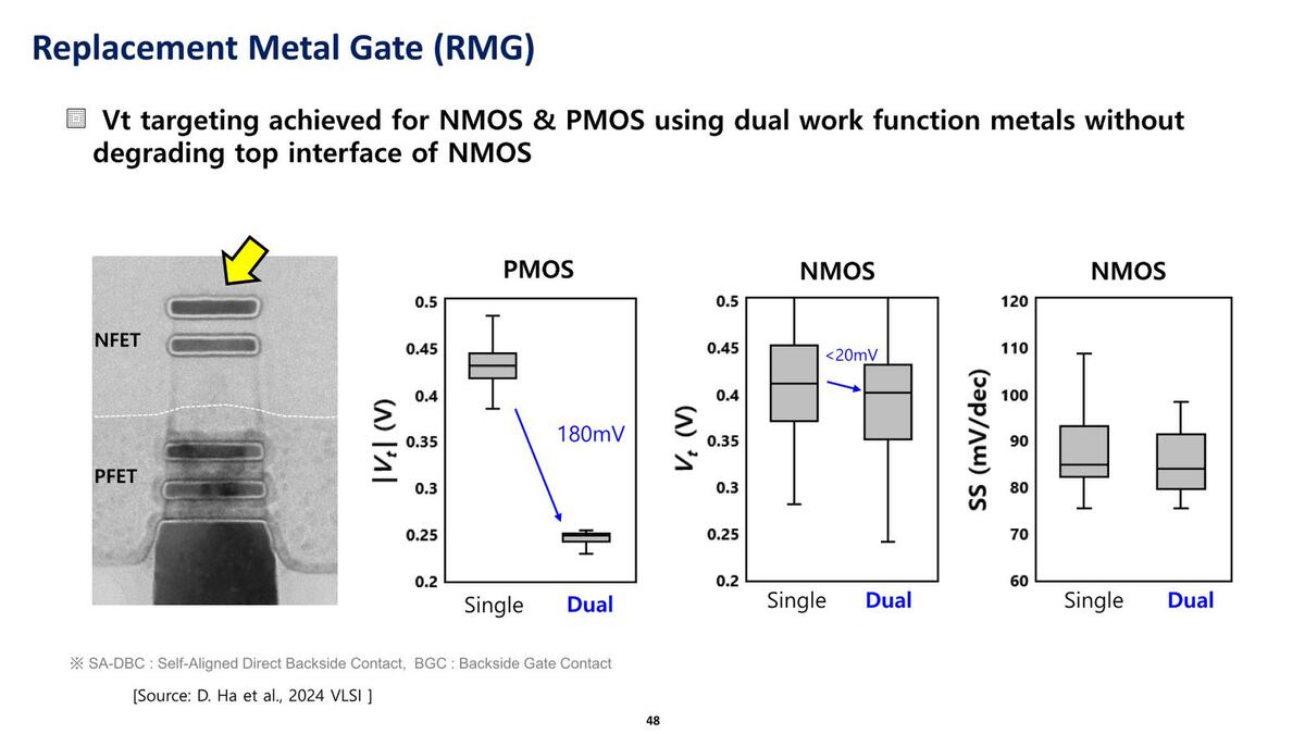 ゲートを、異なる2種類の金属を組み合わせるDWFM(Dual Work Function Metal)に置き換えることも有効だとしている。
