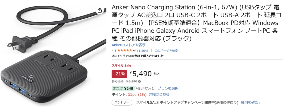 充電器と電源タップを別々に用意しなくていいので、デスクやベッドサイドの配線整理にも向きます。購入前は、使いたいポート数(USB-C/USB-A/AC)と、複数ポート同時使用時の出力条件(単ポート最大67Wなど)を確認しておくと安心です。セール価格は変動することもあるので、表示価格と条件を最終チェックしてからカートインがおすすめ。