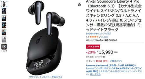 AnkerのオーディオブランドSoundcoreから、完全ワイヤレスイヤホン「Soundcore Liberty 4 Pro(Bluetooth 5.3)」が、Amazonスマイルセールに登場しました。参考価格19,990円のところ、20%オフの15,990円で販売中です。