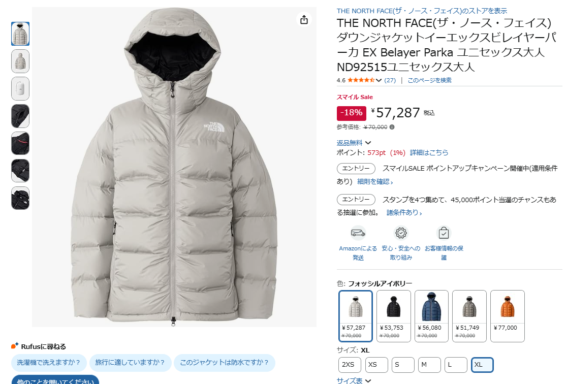ザ・ノース・フェイスのEXビレイヤーパーカが18%オフ!
