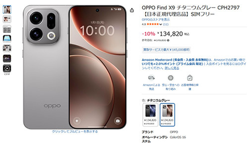 OPPOのスマートフォン「OPPO Find X9(CPH2797)【日本正規代理店品】SIMフリー」が、Amazonセールに登場しました。参考価格149,800円のところ、10%オフの134,820円で販売中です。