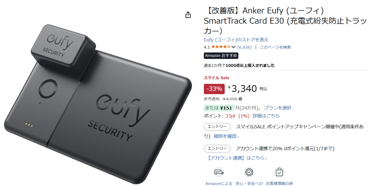 Amazon初売りに登場!Eufy SmartTrack Card E30