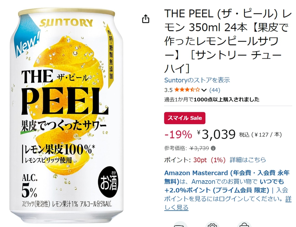 果皮を主役にしたレモンピールサワー「THE PEEL レモン 350ml 24本」が、現在開催中のAmazonスマイルセールにより、24本セットが13%オフで購入できます。
