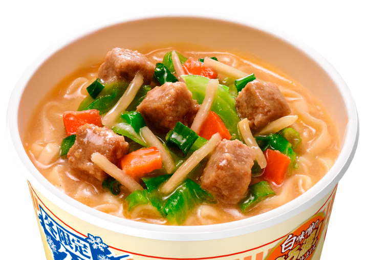 「カップヌードル 白味噌」は、昨年も登場して好評だったという商品。甘みのある3種の白味噌をベースに肉味噌の風味を加えた、まろやかで濃厚なスープが特長。アクセントとして、生姜の香りをきかせている。具材には謎肉、キャベツ、ニンジン、ネギ、生姜を使用。