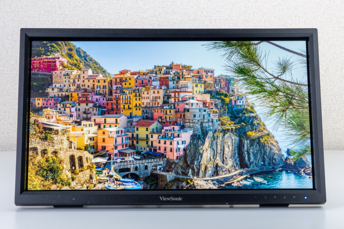 「TD2223-2」は、一般的なデスク上で収まりのいい21.5型のフルHD解像度(1920×1080ドット)を採用している。パネルには、発色が鮮やかでコントラストがはっきりとしたVA光沢パネルを搭載しており、美しい映像を提供してくれる。最大輝度は250cd/m2で、コントラスト比は3000:1。リフレッシュレートは最大75Hz、応答速度は6.5ms、最大表示色は1677万色となっている。