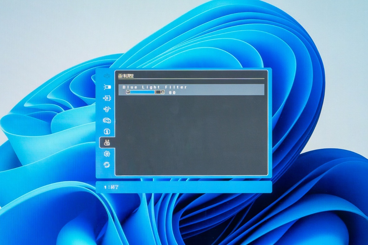 電源ボタンやOSD操作ボタンはタッチ式。長時間の作業でも目に負担をかけないように、ブルーライトフィルターやフリッカーフリーといったユーザーの健康をサポートする機能もOSD画面から設定できる。