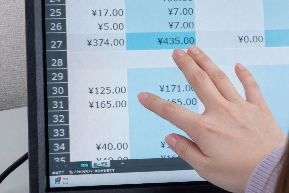「TD2223-2」の大きな注目ポイントは、赤外線式10点マルチタッチを採用しているところ。これにより、パソコン作業においても直感的な操作が可能だ。指先での操作はもちろん、スタイラスペンや手袋をはめた状態でも反応するため、工事現場やキッチンなど、利用環境を選ばない柔軟性も持ち合わせている。
