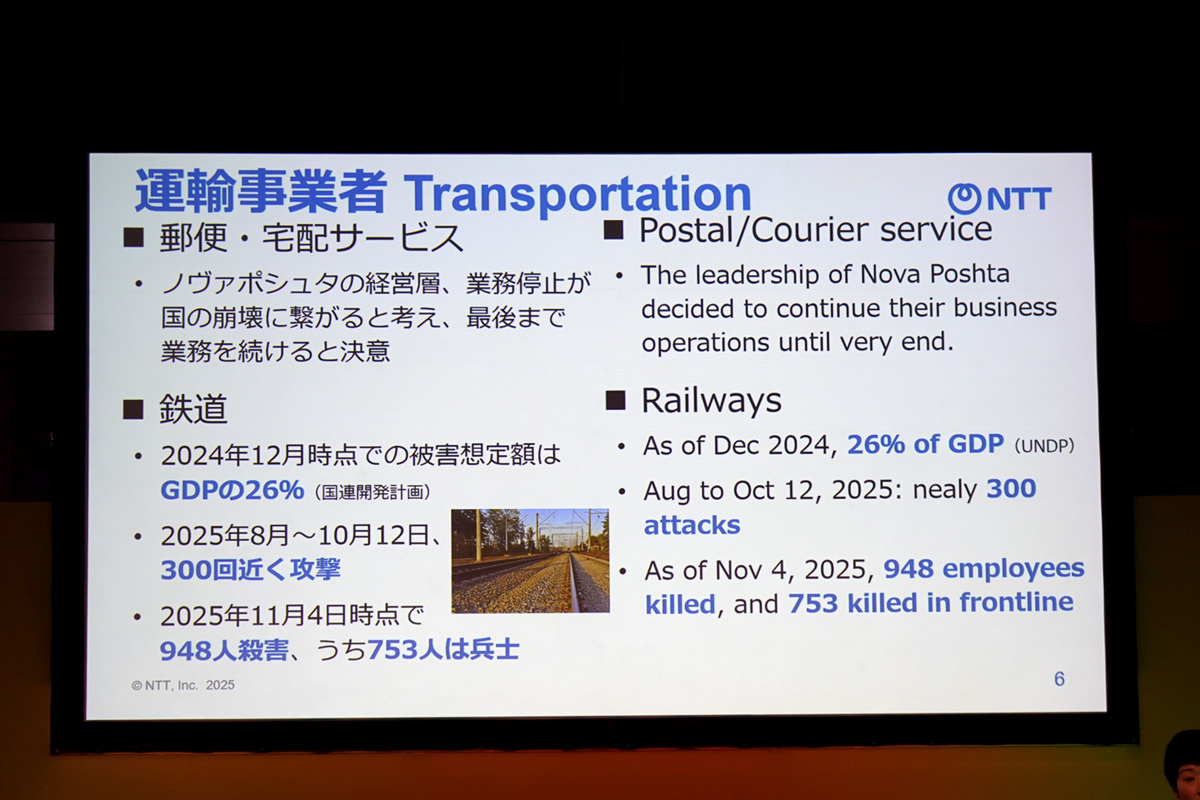 また、鉄道インフラも同様に過酷な状況にある。物流と人の移動を支えるウクライナ鉄道では、多くの社員が業務中に命を落としている。2024年11月時点で900名以上の社員が死亡しており、その多くは兵士としてではなく、鉄道員としての業務遂行中に犠牲となった。彼らもまた、経済活動という戦線を死守する兵士なのだ。インフラを守るということは、施設やシステムを守ること以上に、そこで働く「人」をいかに守るかという問題といえるだろう。