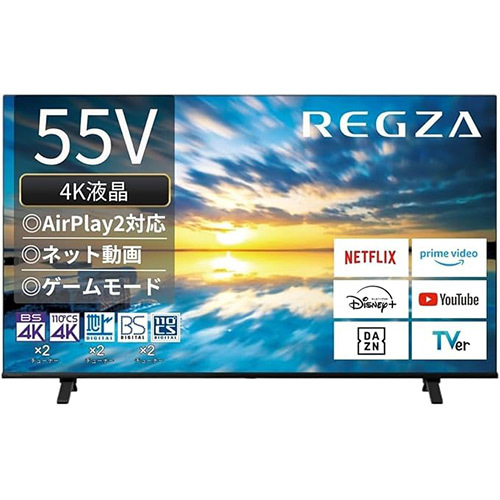 「REGZA 55E350M」は、55インチの大画面、4K映像、スマート機能を備えたバランスの良い液晶テレビです。