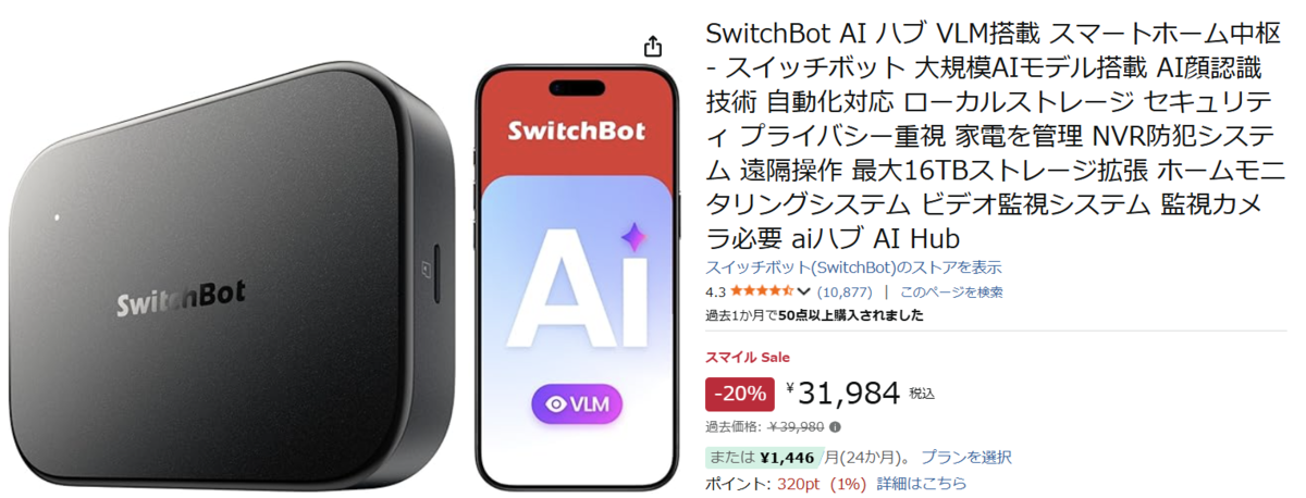SwitchBot(スイッチボット)の次世代スマートホームを支える中枢デバイス「SwitchBot AIハブ」が、Amazonスマイル Sale 初売りに登場しました。過去価格39,980円のところ、20%オフの31,984円となっています。