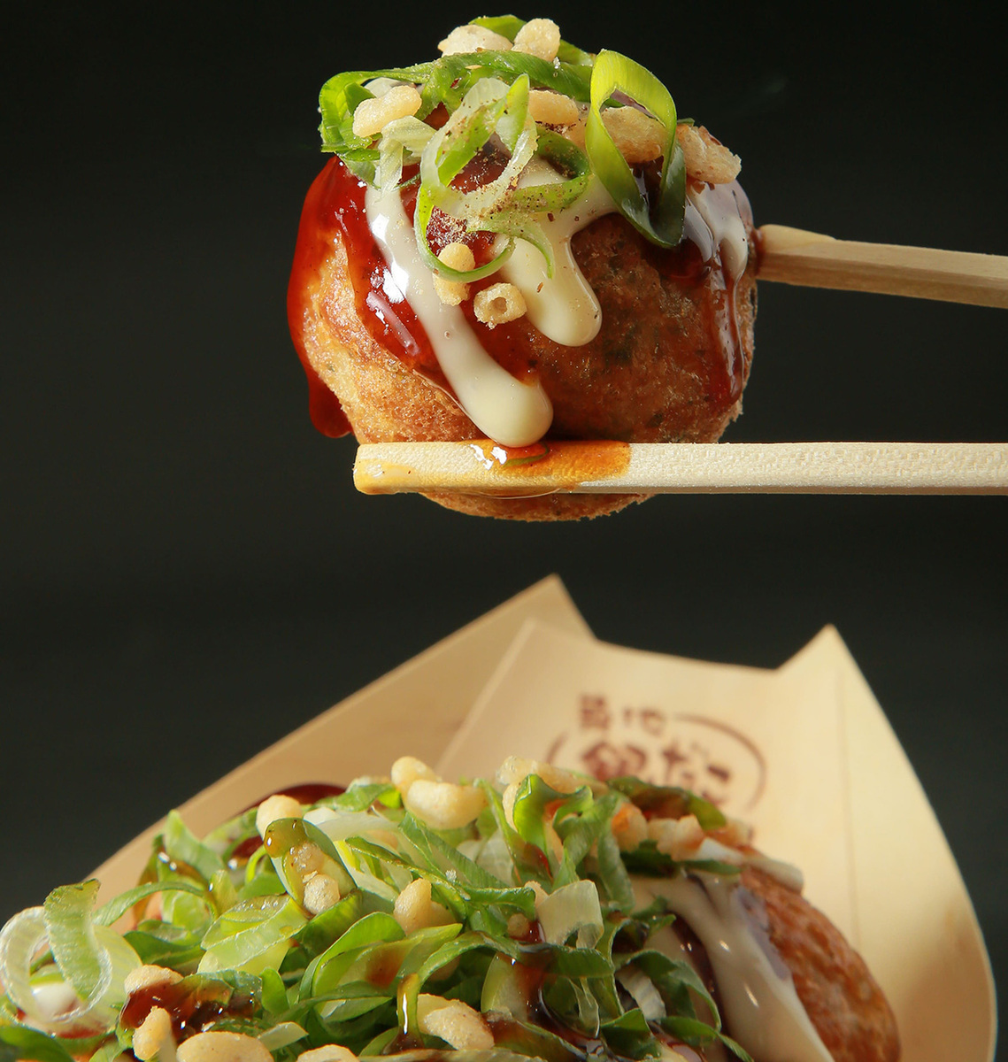 アツアツのたこ焼に、特製の甘口ソースと、風味豊かな削り節、マヨネーズをかけ、そこに主役となる“九条ねぎ”を添えた一品。