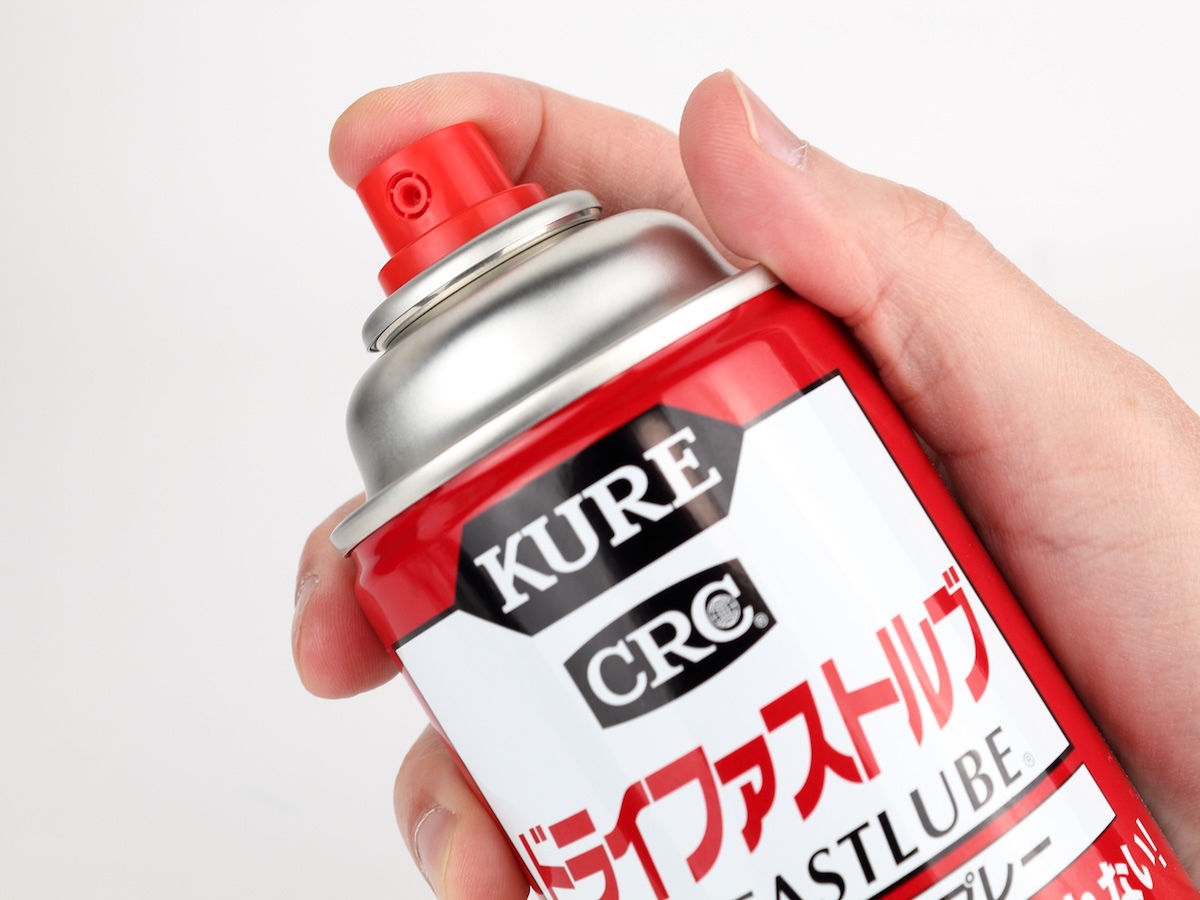 なお、溶剤がある程度油分を剥がしてくれるようなので、今まで5-56などを使ってた、という場所に使っても大丈夫です。ただし、洗浄力は強くないので、かなり汚れてべたべたになり、ホコリもくっついているようであれば、先に洗浄してから使いましょう。ちなみに、もともと潤滑油やグリースなどが使われている場所は、潤滑だけでなく防水や防錆も兼ねていることが多いですから、安易にドライファストルブに置き換えない方が無難です。
