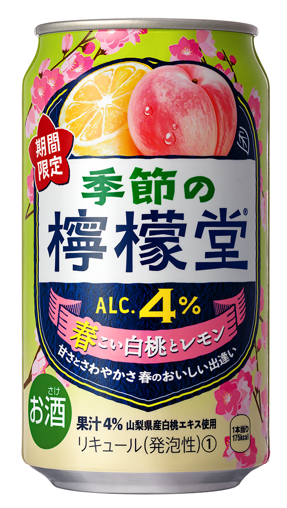 コカ・コーラシステムは「季節の檸檬堂 春こい白桃とレモン」(350ml、アルコール分4%、172円)を1月19日より全国で期間限定にて発売する。