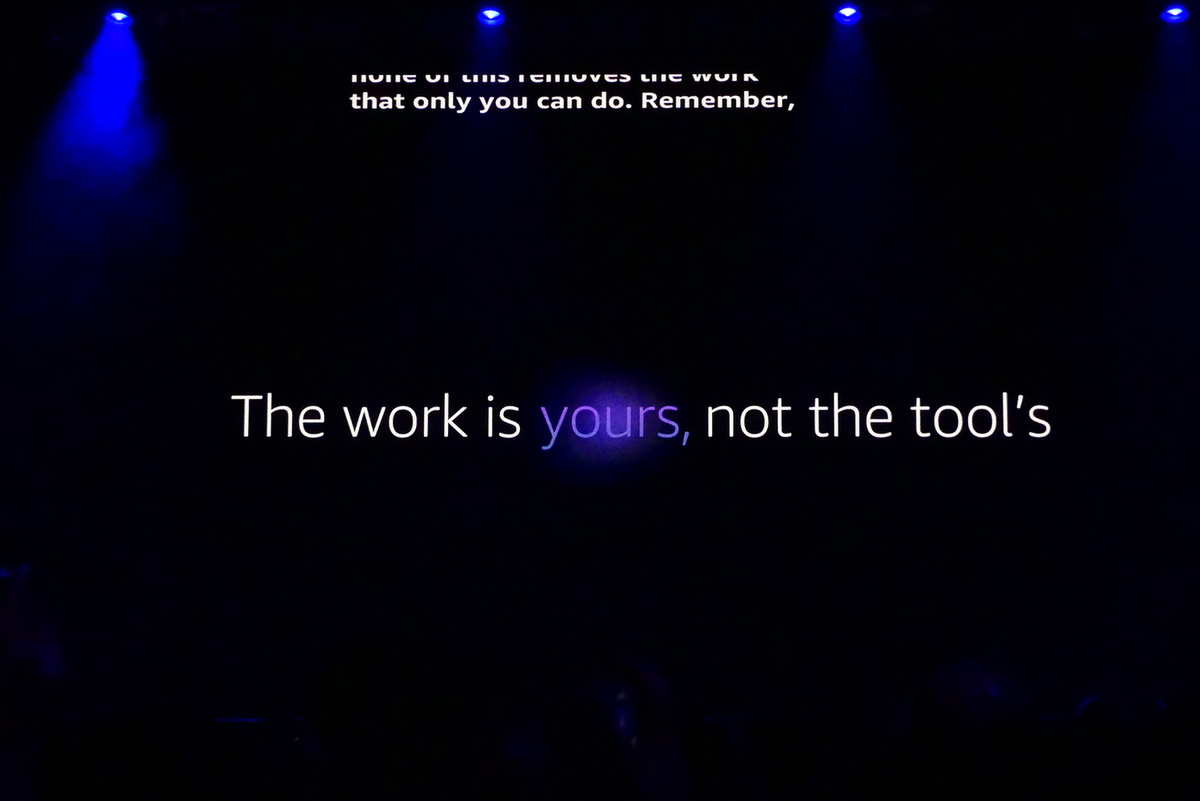 マット・ガーマン氏の基調講演で紹介されたとおり、AIの支援により、開発者の生産性は劇的に向上する。しかし、開発者の作業がなくなるわけではないとボーガス氏は語る。「覚えておいてください。仕事はツールのものではなく、あなた自身のものです。重要なのは、あなたの仕事なんです」(ボーガス氏)。時代や役割とともにツールは変化し続けるが、ビルダーが重要な存在であることはまったく変わらないと強調した。