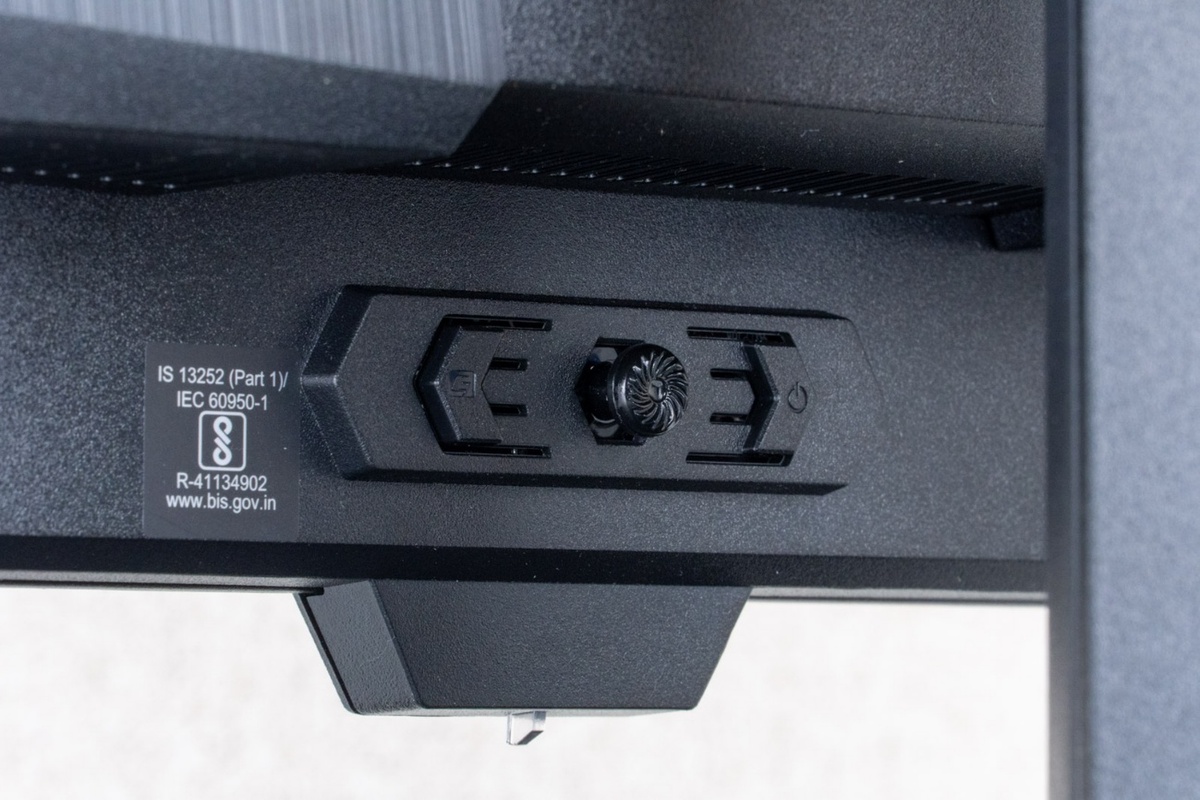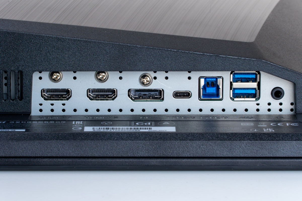インターフェースはHDMI 2.1×2、DisplayPort 2.1a×1、USB Type-C(DP Alt mode、USB PD)×1、USB 3.2 Gen 1 Type-A(USBハブ)×2、USB 3.2 Gen 1 Type-B(PC接続用)×1、ヘッドホン出力×1。USB Type-C端子は最大98WのPower Deliveryに対応しており、ハイエンドなノートPCでもケーブル一本で映像出力と急速充電を同時に完結できる。また、電源が内蔵のため、電源ケーブルをコンセントにつなぐだけでOK。コンセント周りもスッキリする。