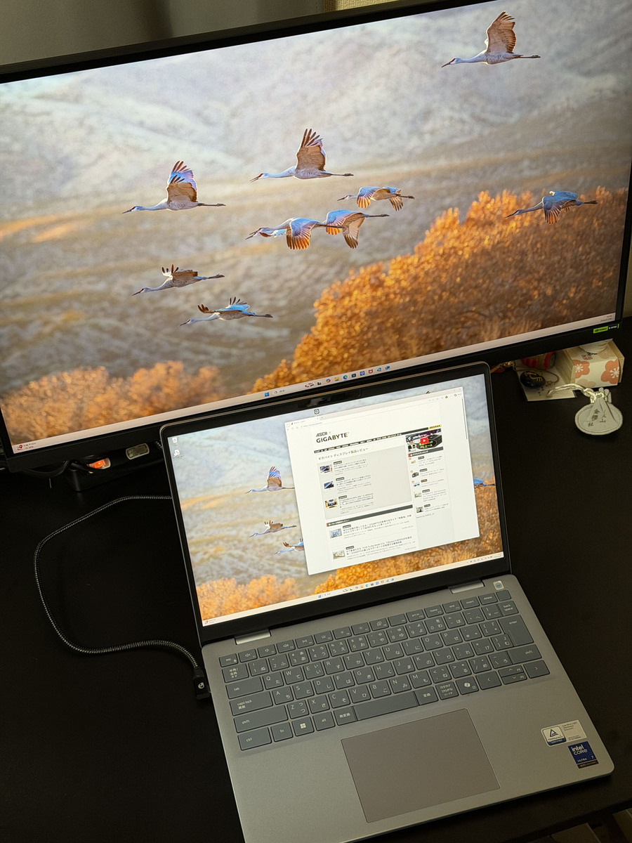 USB-Cポートは最大18W(設定により最大45W)の給電が可能。USB PDとDisplayPort Alternate Modeに対応するUSB-C端子を備えたノートPCなら、ケーブル1本で映像出力と給電を同時に行なえる。ケーブルがごちゃごちゃしがちなデスク周りをスッキリさせられるのは、地味ながらうれしいポイントだ。