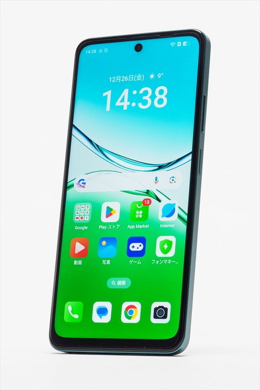 画面のまわりの枠がやや太く、見た目的にはやや野暮ったさがあります。高価格帯のスマホと比べると、どうしても洗練された印象では正直ありません。