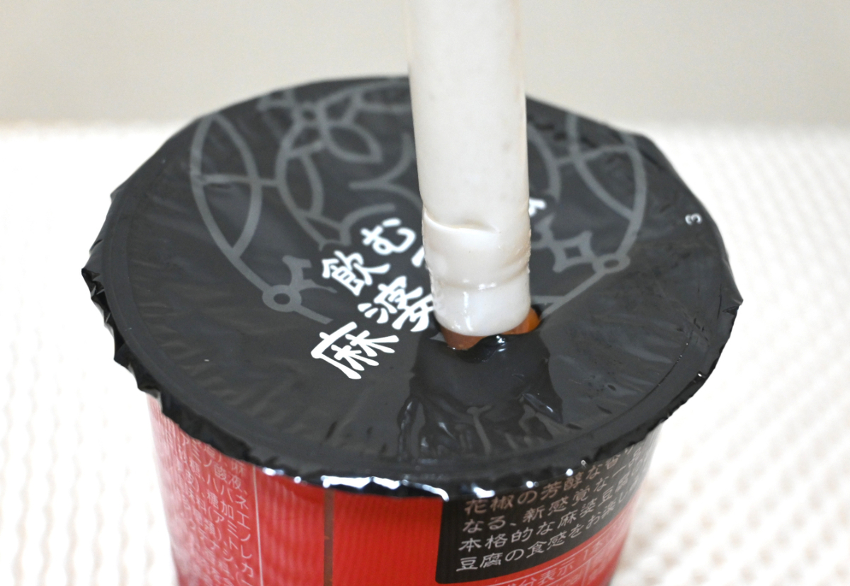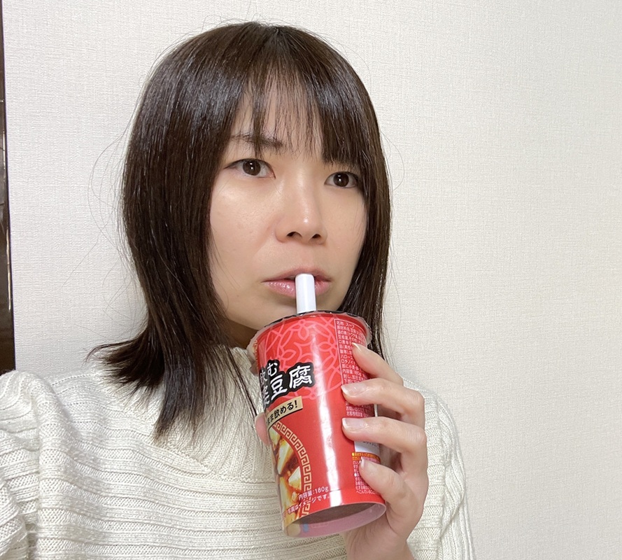 記者も実際にズズズッと吸ってみました。飲む麻婆豆腐なので、当然ながら、しょっぱい味が飛び込んできます。