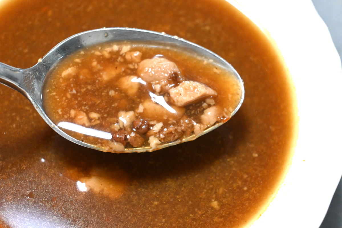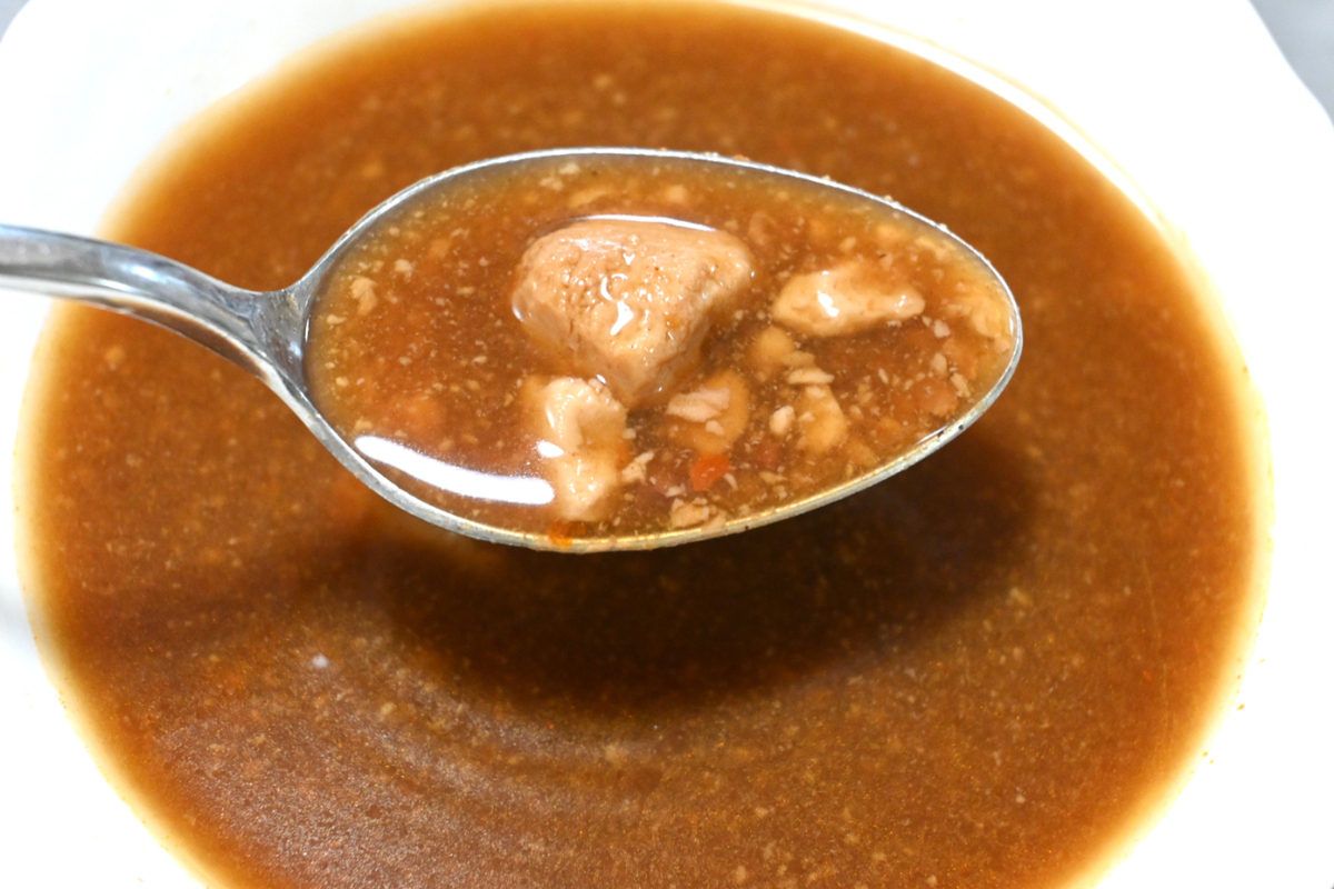 温かくすると、冷たい時に感じた塩味のとがりがやわらぎ、“麻婆豆腐スープ”として落ち着いて味わえる印象に変化します。