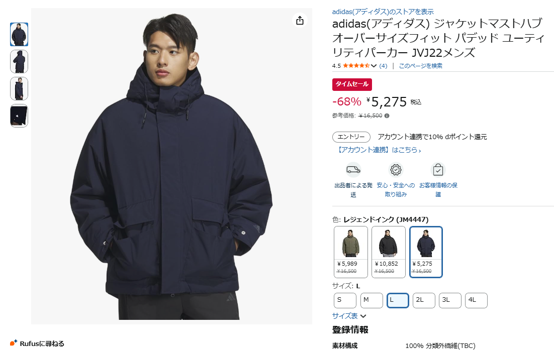 複数のポケットによる収納力とゆったりした着心地を両立したアディダスの「マストハブ オーバーサイズフィット パデッド ユーティリティパーカー」が68%オフの5,275円で、Amazonにて割引販売中!