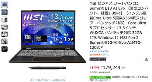 【Amazonセール】MSI ノートPC「Summit E13 AI Evo(13.3型)」登場!