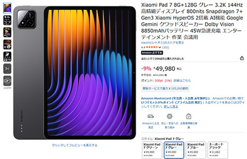 【Amazonセール】Xiaomi 11.2インチタブレット「Xiaomi Pad 7(8GB+128GB)」登場!
