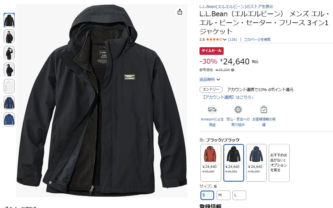 1着で3通りの着こなしが楽しめるL.L.Beanの3イン1ジャケットが30%オフの24,640円で、Amazonにて割引販売中!