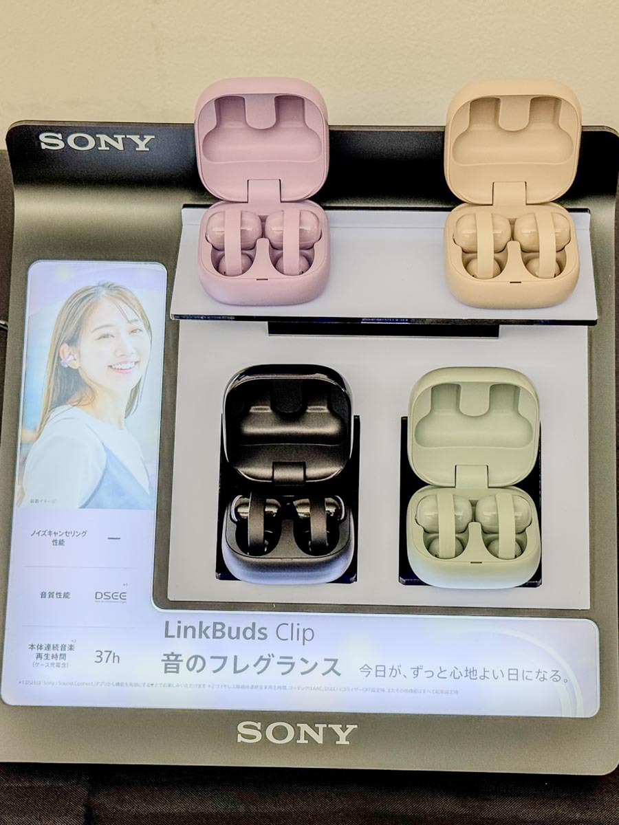 その新機種がLinkBuds Clipで、クリップのような形状の本体を耳の縁に挟んで固定するイヤーカフ型になったのが特徴だ。LinkBuds Openはドライバーの中央に穴を空け、外音が耳に入ってくるようにしたリング型ドライバーの採用するなど、独自性のあるコンセプトが特徴だったが、LinkBuds Clipは最近のオープンイヤー型イヤホンのトレンドに追従した形だ。