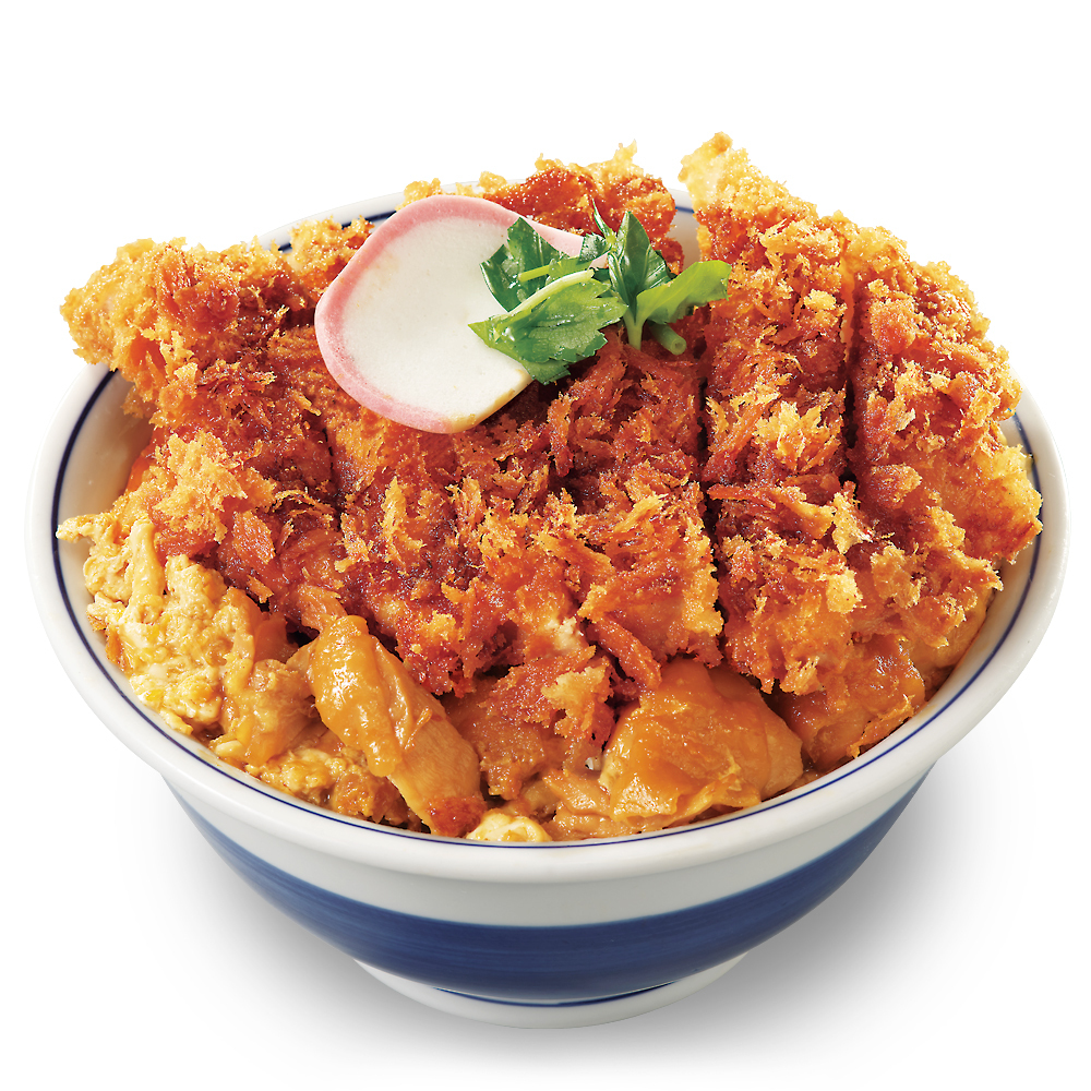 鶏の旨みとかつおの風味が溶け込んだ割り下で仕立てた親子丼の上に、サクサクに揚げたロースカツをオン。