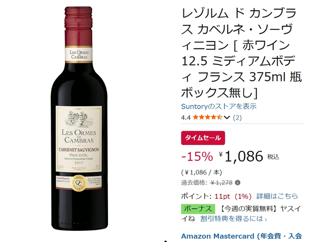 南フランス産の赤ワイン「レゾルム ド カンブラス カベルネ・ソーヴィニヨン」が、現在開催中のAmazonタイムセールで15%割引の対象となっています。