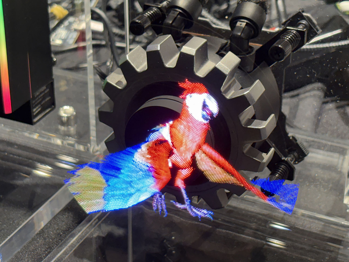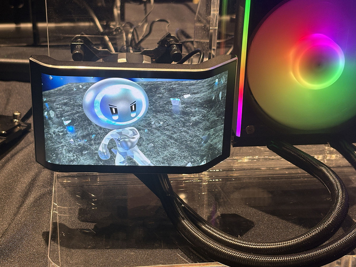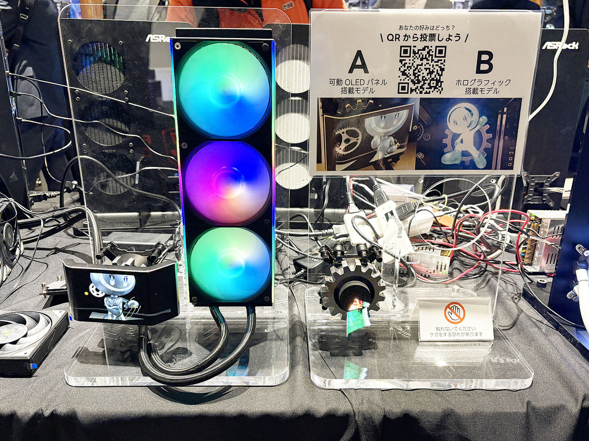 Taichi 360 AIOクーラーのコンセプトモデル。可動OLEDパネルモデルと、ホログラフィックモデルの2種類を展示。どちらを製品化してほしいかをQRコードから投票できた。この投票結果をもとに最終的な製品仕様を決めるそうだ