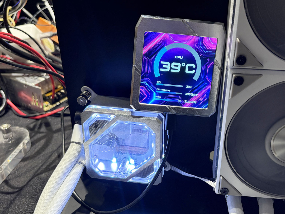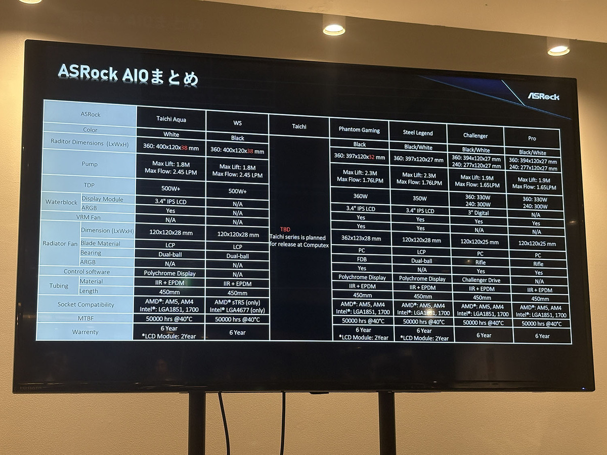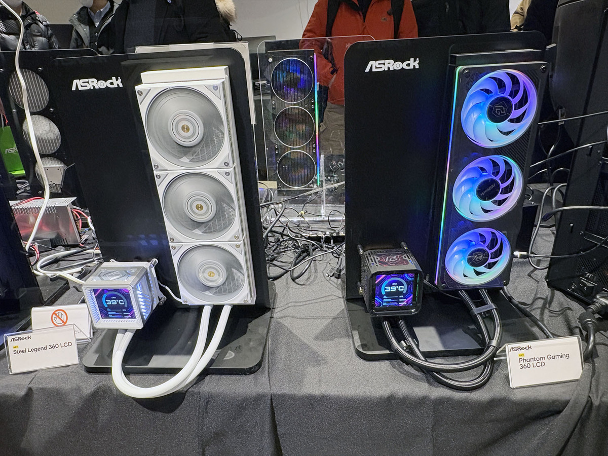 会場の目立つ位置に置かれていたのが、ASRock初の簡易水冷ユニットだ。水冷CPUクーラー分野への進出は、ASRockの強みを戦略的に拡大するもので、マザーボードプラットフォームとの統合と、より強力なエコシステムによる相乗効果を実現するものだという。単に水冷クーラーを製品ラインナップに加えたわけではなく「ASRockの自然な進化であり、追加ではない」と強調していた。
