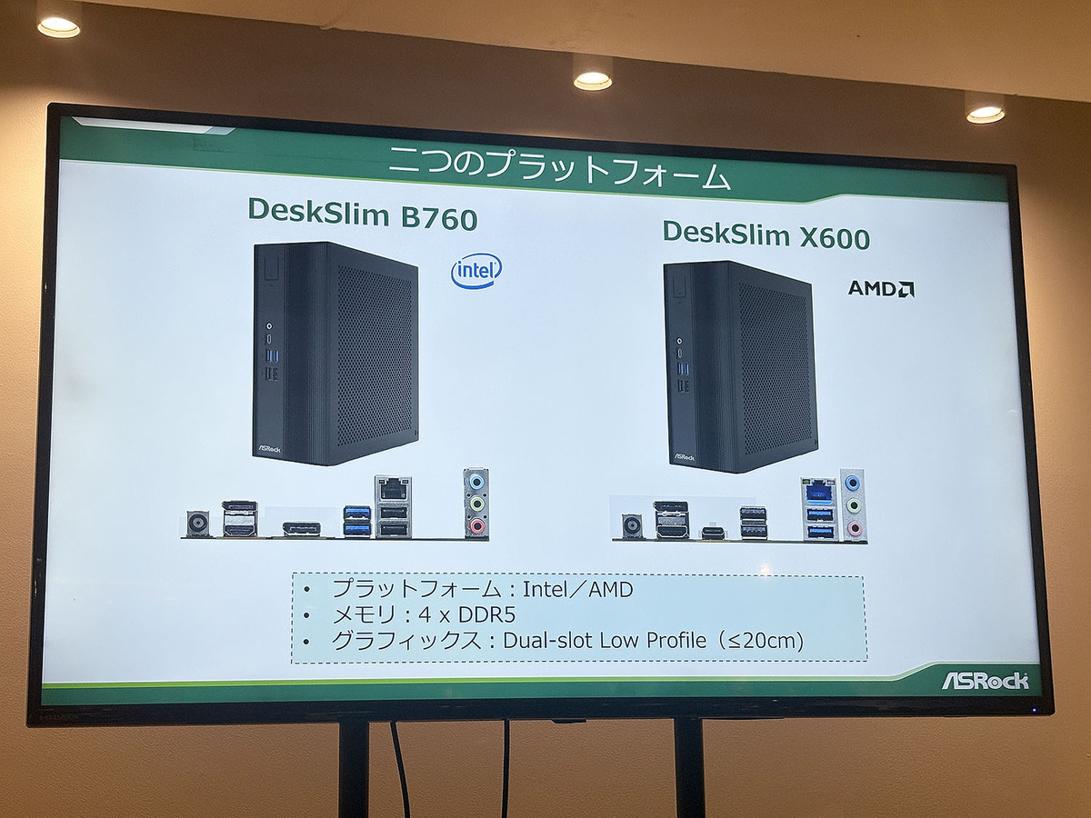ミニPCにおいては、DeskSlimシリーズを展開する。DeskMiniとDeskMeetの中間に位置するモデルで、20cmまでのロープロファイルビデオカードを搭載できる。CPUは125WまでのTDPに対応するため、DeskMiniとDeskMeetよりも高性能なCPUを搭載できる。