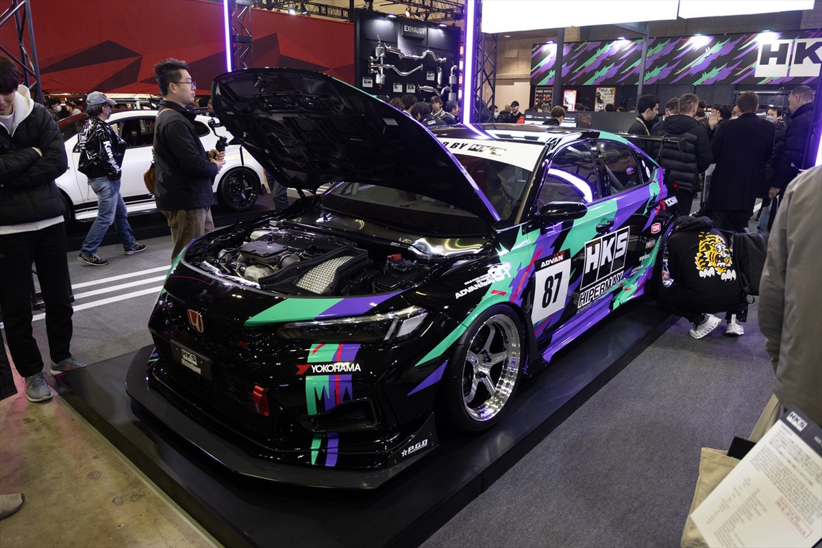 シビックのチューニングはHKSも行なっており、筑波TC2000アタッカーといえるHKSレーシングパフォーマーFL550Rを展示していました。エンジンとターボがノーマルのままで、すでに58秒766を記録しているというから驚きです。