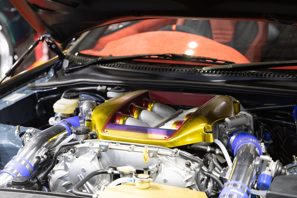 スープラはというと、スモーキー永田さん主宰のトップシークレットのA80型に来場者の視線が集中。日産のR35 GT-Rに使われていたVR38型エンジンを搭載したそれは、その昔、ナルド最高速アタックした車両へのオマージュだとか。